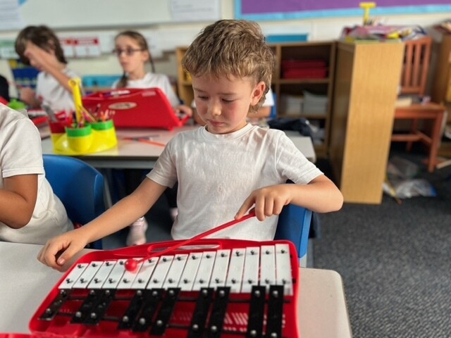 Our music curriculum ensures children listen and respond to music, explore and create, sing and play and share and perform. This is embedded through classroom activities as well as the weekly singing assemblies, various concerts and performances and the joining of one of our musical ensembles. The elements of music are taught in the classroom lessons so that children are able to use some of the language of music to dissect it, and understand how it is made, played, appreciated and analysed. In the classroom, children learn how to play different instruments such as recorders, ukulele, tuned and untuned percussion instruments which facilitate the understanding of the different musical methods and teach them the reading of musical notation. They also learn how to compose, focusing on different dimensions of music, which in turn feeds their understanding when listening, playing, or analysing music. Through the musical program Charanga, teachers are able to produce inclusive lessons for all children to access the musical curriculum in a fun and engaging way, further promoting a love of learning.
